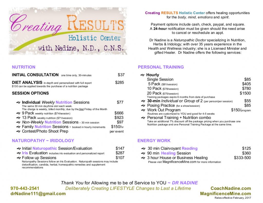 Creating RESULTS Holistic Center. Healing opportunities for the body, mind, emotions and spirit. See the full rates chart below. Click here to download